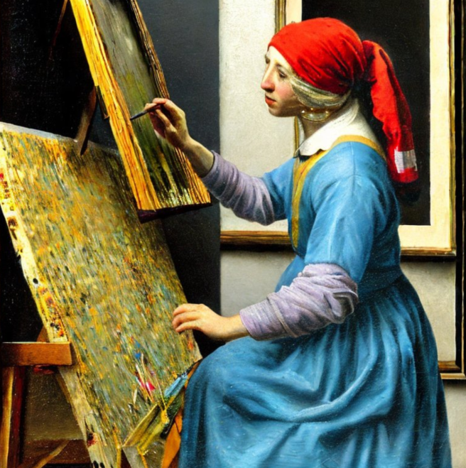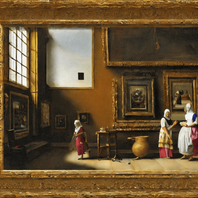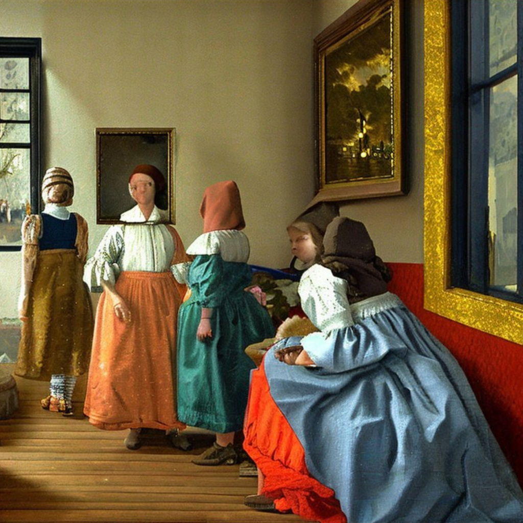The following collection of experiments with Stable Diffusion 2.1 are dedicated to the great Vermeer, and in celebration of his current show at the Rijksmuesum, right here in Amsterdam, where I’m sitting now. I’ve seen a lot of pretty naff’ posters, and promotional artwork for the show, the girl with the peal earring is all over the place. I wanted to print some of these out in various sizes and formats and scatter them about the exhibition. I wonder what you think about them?