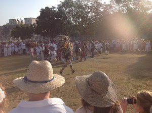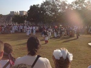 Walking down the path to Chitchen Itza with a candle chanting Hoooo Naaaaab Kuuuuu, the sun crept over the bushes like a sniper in orange combats, more than a thousand ‘synthesis people’ snaked on down the trail dressed in white, chanting regalia, singing, praying.
